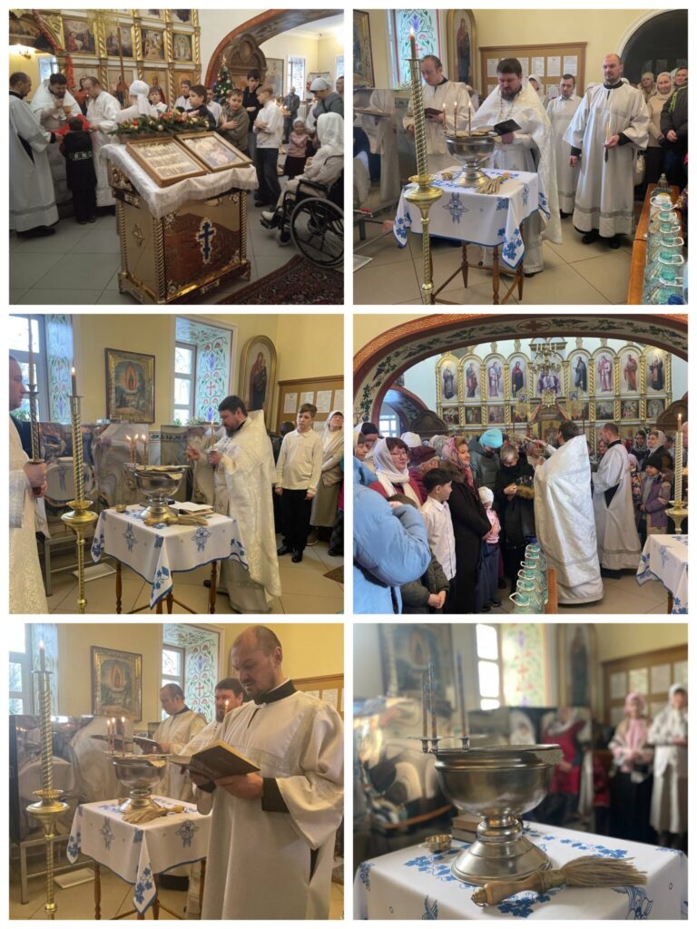 Господи Иисусе Христе, Сыне Божий Единородный, от Отца прежде всех век рожденный, Свете от Света, просвещаяй всяческая, в последняя же лета от Пресвятыя Девы Марии нетленно воплощенный и в мир сей на спасение наше пришедый! Ты бо не потерпел еси видети от диавола мучима рода человеча и сего ради в пресветлый день Богоявления Твоего пришел еси на Иордан ко грешником и мытарем креститися от Иоанна, безгрешен сый, да исполниши всякую правду и да возьмеши в водах Иорданских грехи всего мира, яко Агнец Божий, во еже понести я на Себе и искупити Крещением крестным, пречистою Кровию Твоею. Сего ради погрузившуся Тебе в водах, отверзошася Тебе небеса Адамом заключенная и Дух Святый сниде на Тя в виде голубине, просвещение и обожение носяй естеству нашему, и Пребожественный Отец Твой возвести Тебе небесным гласом благоволение Свое, зане сотворил еси волю Его и человек грехи восприял еси и Себе на заклание уже предуготовал еси, якоже Сам рекл еси: “Сего ради любит Мя Отец, яко Аз душу Мою полагаю, да паки прииму ю”, и тако во всесветлый день сей, Ты, Господи, положил еси начало искупления нашего от грехопадения прародительскаго. Сего ради вся силы небесныя радуются и вся тварь веселится, чаюше свобождение свое от работы истления, глаголюще: Прииде просвещение, благодать явися, избавление наста, мир просветися и людие радостию исполняются. Да веселится ныне небо и земля и мир весь да играет; реки да плещут; источницы и озера, бездны и моря да срадуются, яко Божественным Крещением освятися днесь естество их. Да радуются днесь и человеков собори, яко естество их взыде ныне паки к первому благородию и вси с радостию да поют: Богоявления время. Приидите мысленно на Иордан, видение велие в нем узрим: Христос ко Крещению грядет. Христос ко Иордану приходит. Христос наши в воде погребает грехи. Христос овча похищеннаго и заблуждшаго приходит искати и обрет е вводит в рай. Сего Божественнаго таинства воспоминание празднующе, усердно молимся Тебе, Человеколюбче Господи: сподоби нам жаждущим по гласу Твоему приити к Тебе, Источнику присноживотныя воды, да почерпем воду благодати Твоея и оставления грехов наших и да отвергшеся нечестия и мирских похотей; целомудренно и девственно, и праведно и благочестно поживем в нынешнем веце, ждуще блаженнаго упования и явления славы Твоея, Великаго Бога и Спаса нашего, да не от дел наших спасеши нас, но по Твоей милости и по обновлению Святаго Духа Твоего банею пакибытия, Егоже обильно излиял еси, да оправдившеся благодатию Его, наследницы будем вечныя жизни во Царствии Твоем, идеже со всеми святыми сподоби нам прославити всесвятое Имя Твое со Безначальным Твоим Отцем и со Пресвятым и Благим и Животворящим Твоим Духом ныне и присно и во веки веков. Аминь.